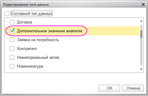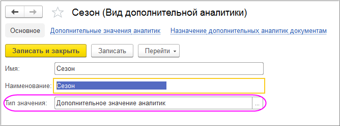 Указать наименование и выбрать с помощью установки флажка тип значения «Дополнительное значение аналитик».