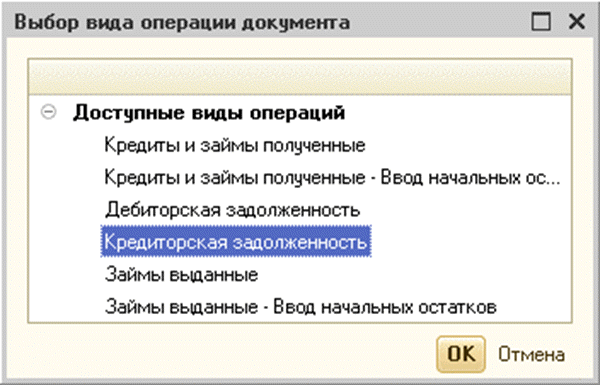 После этого по нажатию «ОК» документ вводится с выбранным видом операции. Правда, если вид операции выбран ошибочно – ничего страшного в этом нет, можно просто выбрать необходимый вид операции непосредственно в документе: