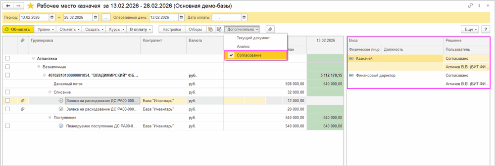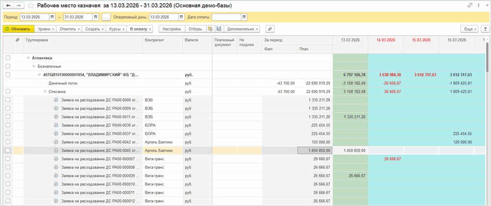Рабочее место казначея позволят автоматически формировать платежные документы или документ «Реестр платежей» по команде «В оплату».