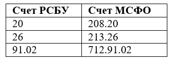 Соответствие счетов РСБУ и МСФО для трансляции: