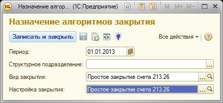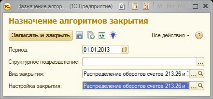 Источник для выбора данных, подлежащих распределению по счету 213.26 (Поля «Данные» справочника «Настройки закрытия»).