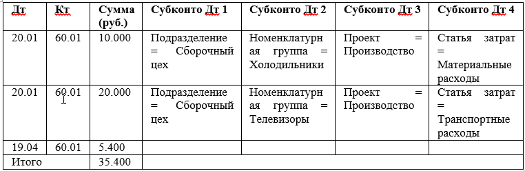 В результате закрытия счетов с видом «Распределение» сформируются проводки: