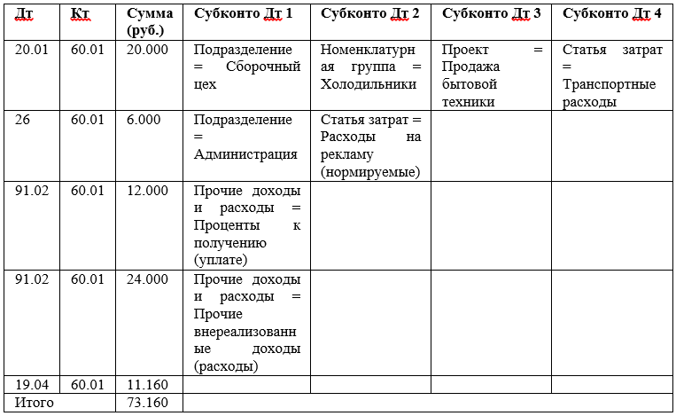 На счете 208.20 организован аналитический учет в разрезе Субконто: