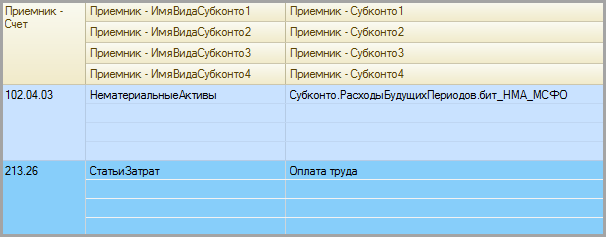 Правила трансляции №2 и №3 подчинены правилу трансляции №1 и являются более приоритетными. Это значит, если расход будущих периодов является программным обеспечением, трансляция затрат будет осуществляться на счет МСФО 102.04.03. В том случае, если вид расхода «Оплата труда», то трансляция будет осуществляться на счет МСФО 213.26. Во всех остальных случаях трансляция будет осуществляться на счет МСФО 712.91.02.