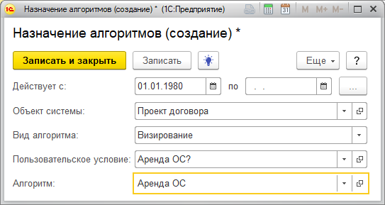 Пример: был настроен простой алгоритм визирования для документа «Проект договора», в котором было 48 точек. Алгоритм состоял из 6 пользовательских условий, которые определяли тип договора и 7 согласующих по каждому типу договора. Т.е. весь процесс согласования договора был введен в один алгоритм визирования в системе.