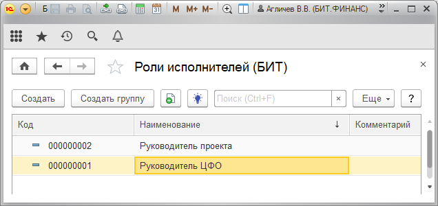Нажать кнопку «ОК», затем выбрать роль «Руководитель ЦФО».