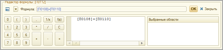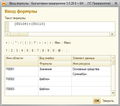 Ввести формулу в ячейку отчета удобно с помощью специального редактора формулы, который открывается при нажатии кнопки «Действия макета» - «Установить правило заполнения области» - «Ввести формулу».