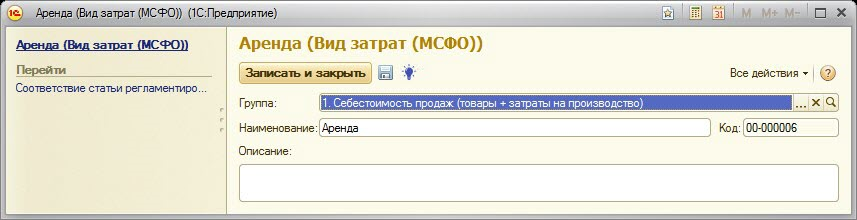 Справочник «Виды затрат (МСФО)» используется для задания структуры затрата для целей дальнейшего использования в расшифровках отчетности.