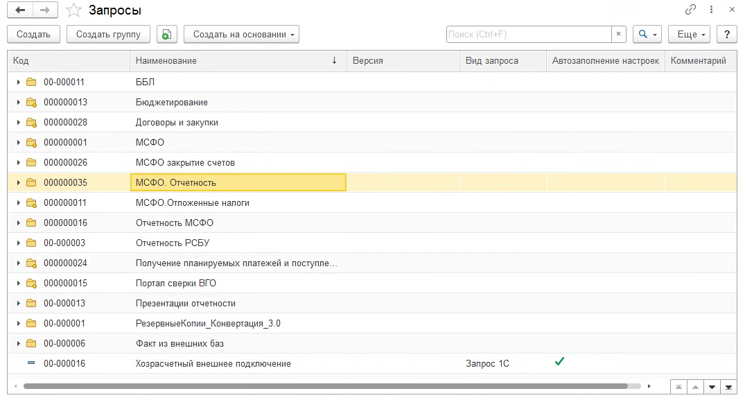 Справочник «Запросы» (раздел «Получение данных (БИТ)») предназначен для хранения произвольных запросов.