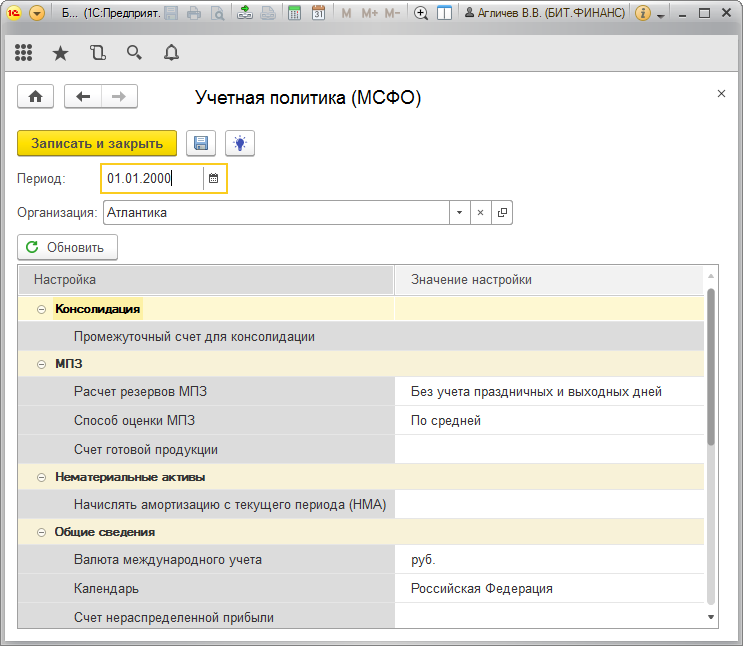 Способ оценки МПЗ – параметр может принимать одно из двух значений: «ФИФО» либо «По средней». Установленный способ оценки МПЗ определяет способ оценки себестоимости при списании МПЗ в подсистеме МСФО;