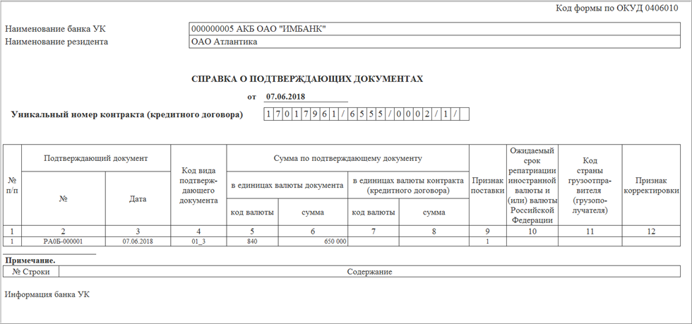 На основании «Справки о подтверждающих документах» могут создаваться корректирующие справки, которые предоставляются в банк в соответствии с законодательством о валютном контроле.