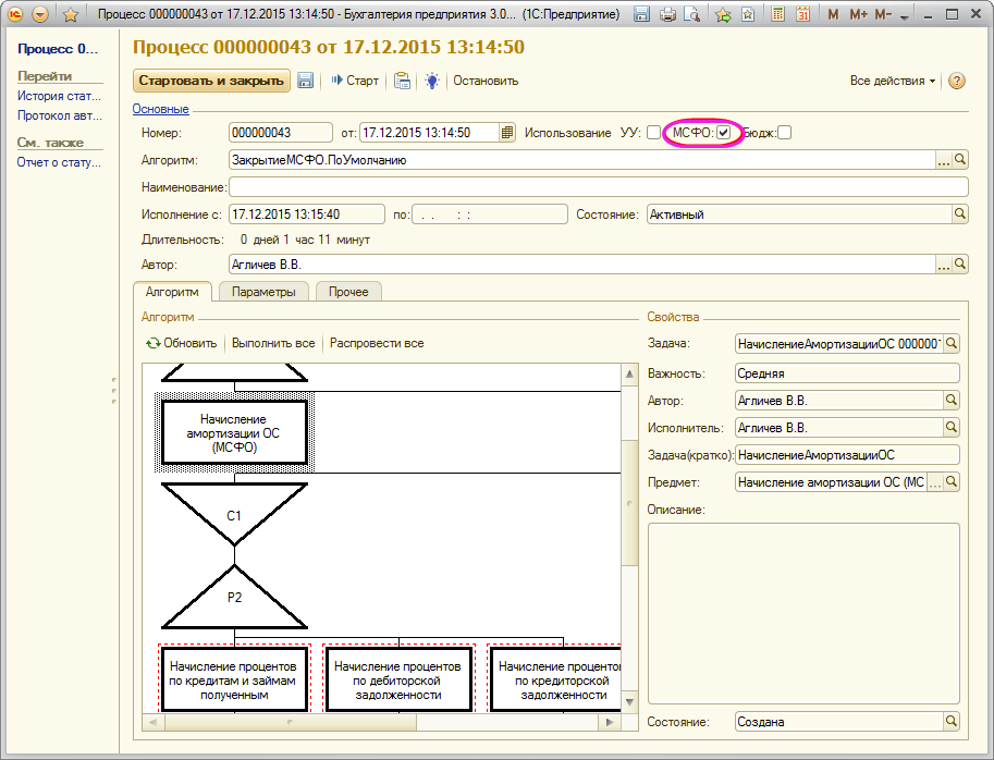 В данном журнале отображаются процессы, в которых установлен флаг «МСФО»: